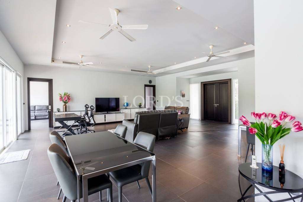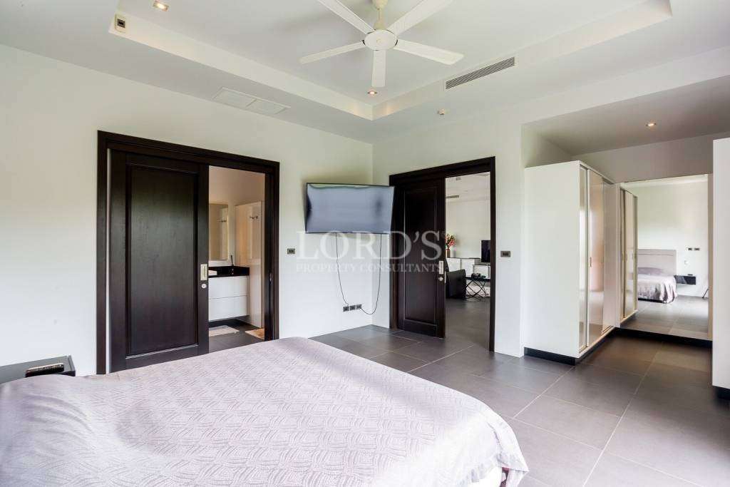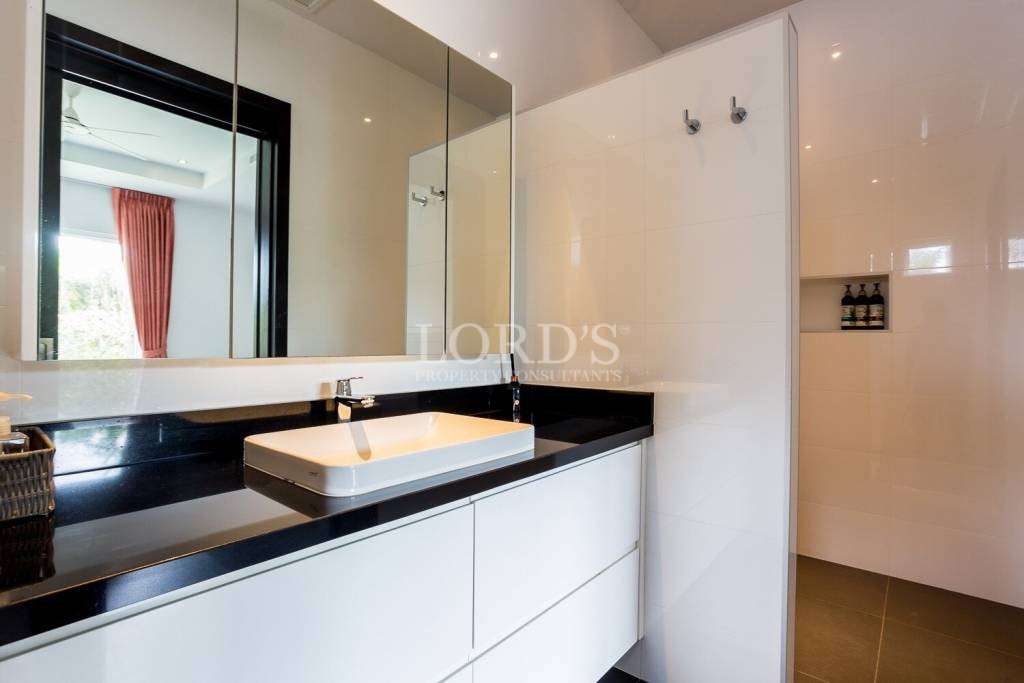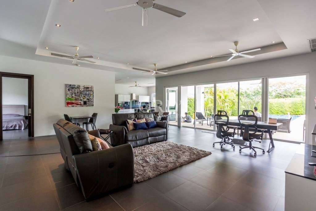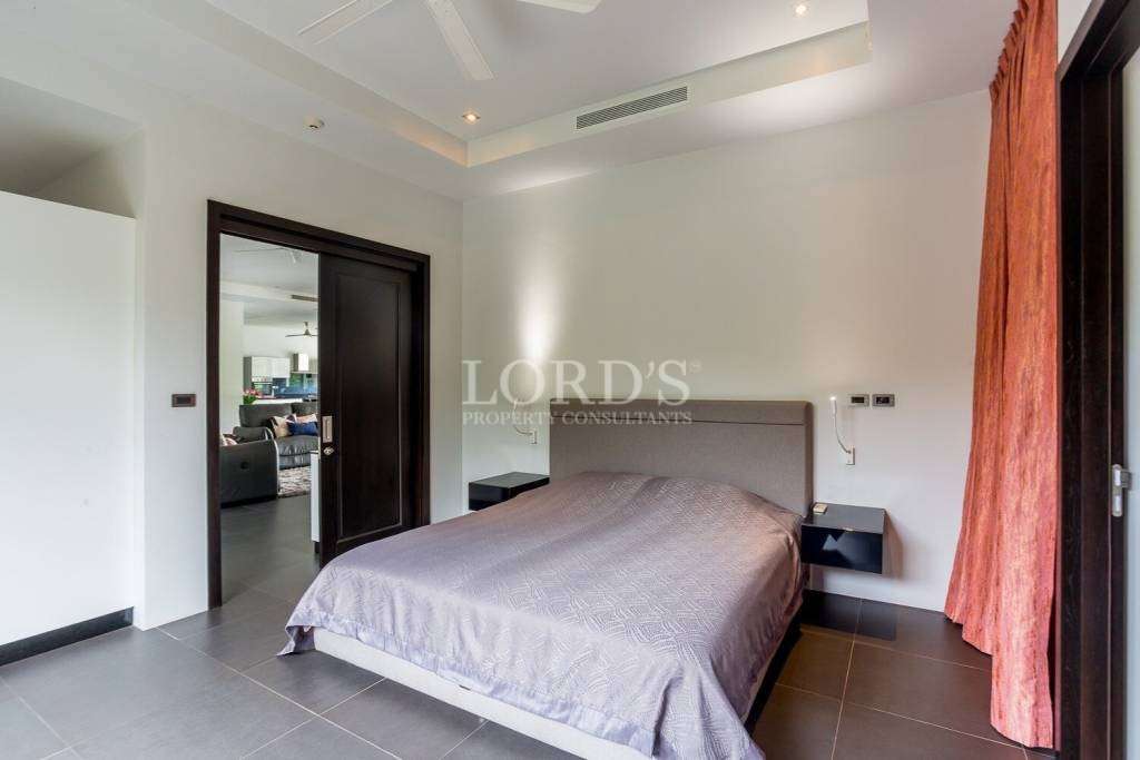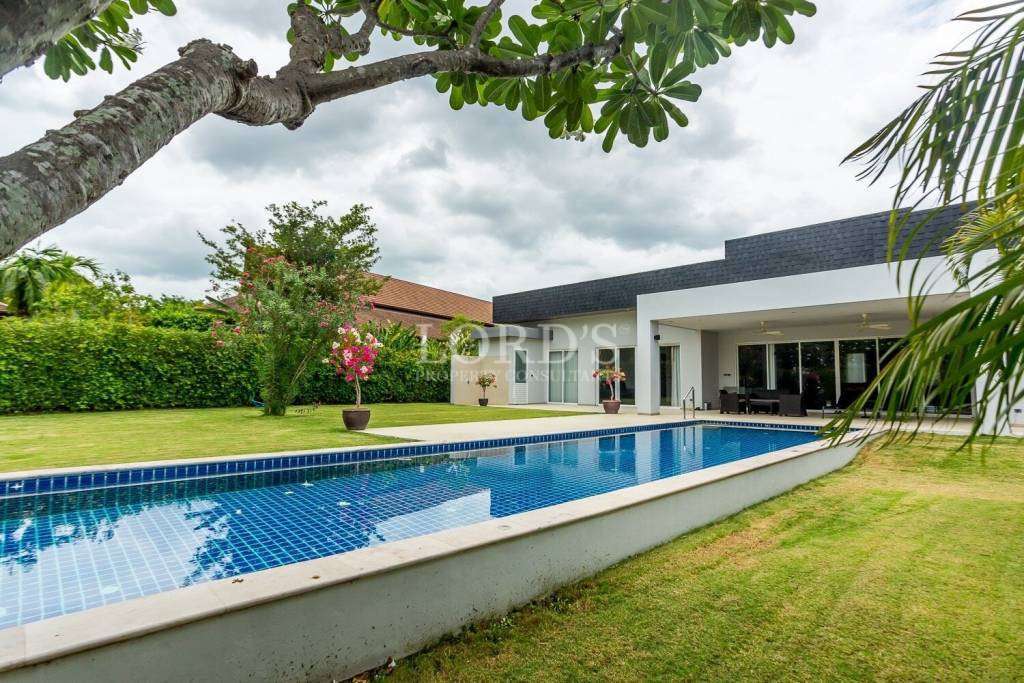 Entfliehen Sie in eine wirklich einzigartige Villa in der prestigeträchtigen Baan Ing Phu-Gemeinde, die an den Weltklasse-Golfclub Black Mountain angrenzt. Eine internationale Schule befindet sich ganz in der Nähe, was es zum perfekten Zuhause für Familien macht, die ein ruhiges und gehobenes Lebensumfeld suchen.