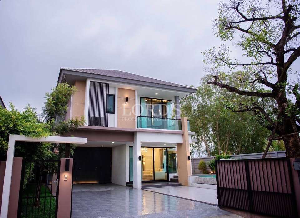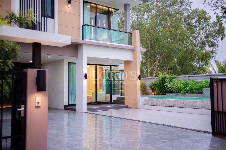Zermatt Hua Hin, an exclusive central development in Soi 102, Hua Hin. This premium two-story villa boasts a spacious 350 sqm interior on a 388 sqm plot, offering the perfect blend of modern design and luxury. The fully furnished property features four bedrooms and three bathrooms, all under freehold ownership.