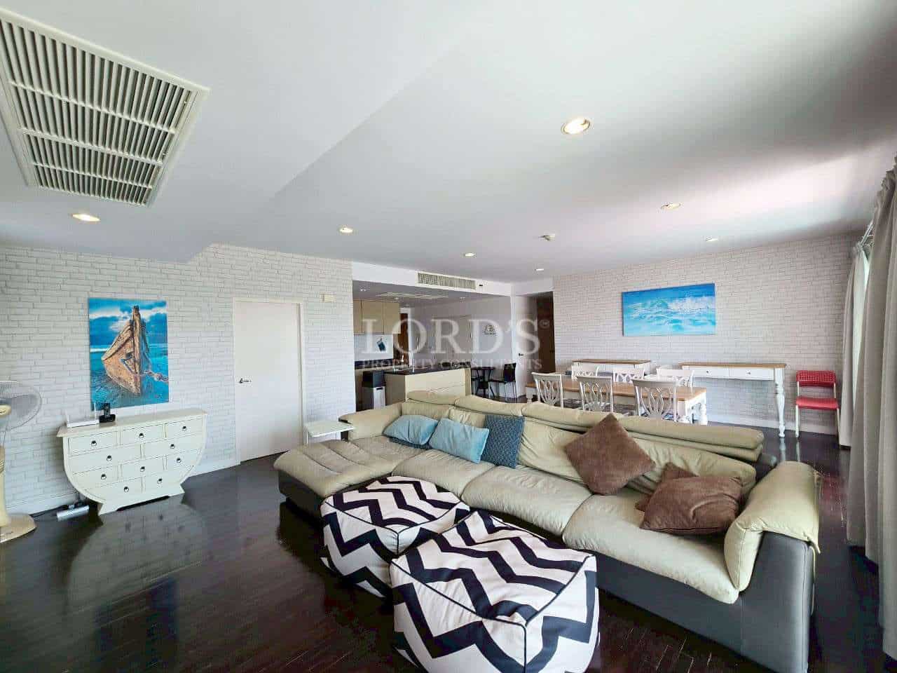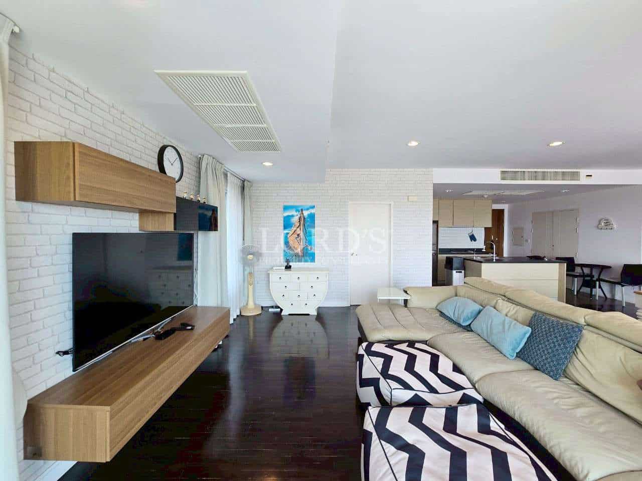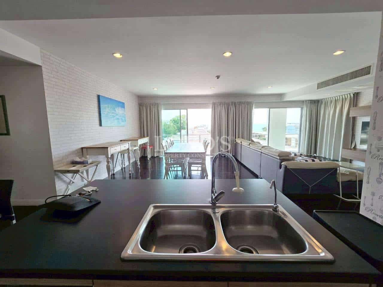 Luxuriöse 3-Schlafzimmer-Eigentumswohnung mit Meerblick in bester Lage in Baan San Dao zu vermieten.
