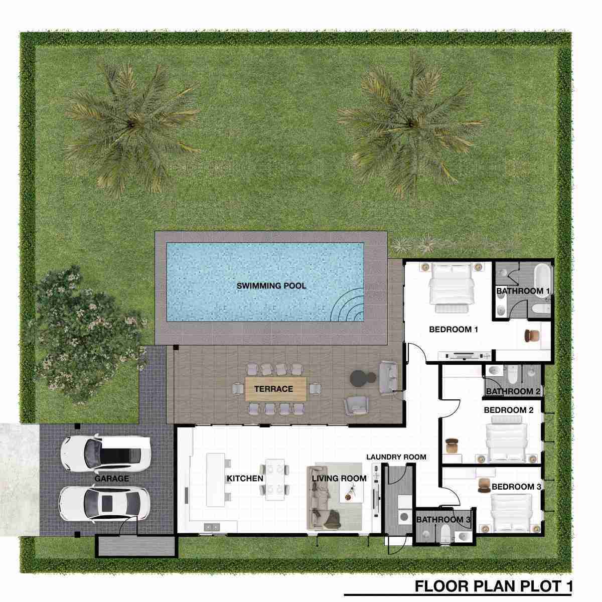 - 3 Schlafzimmer und 3 Bäder
