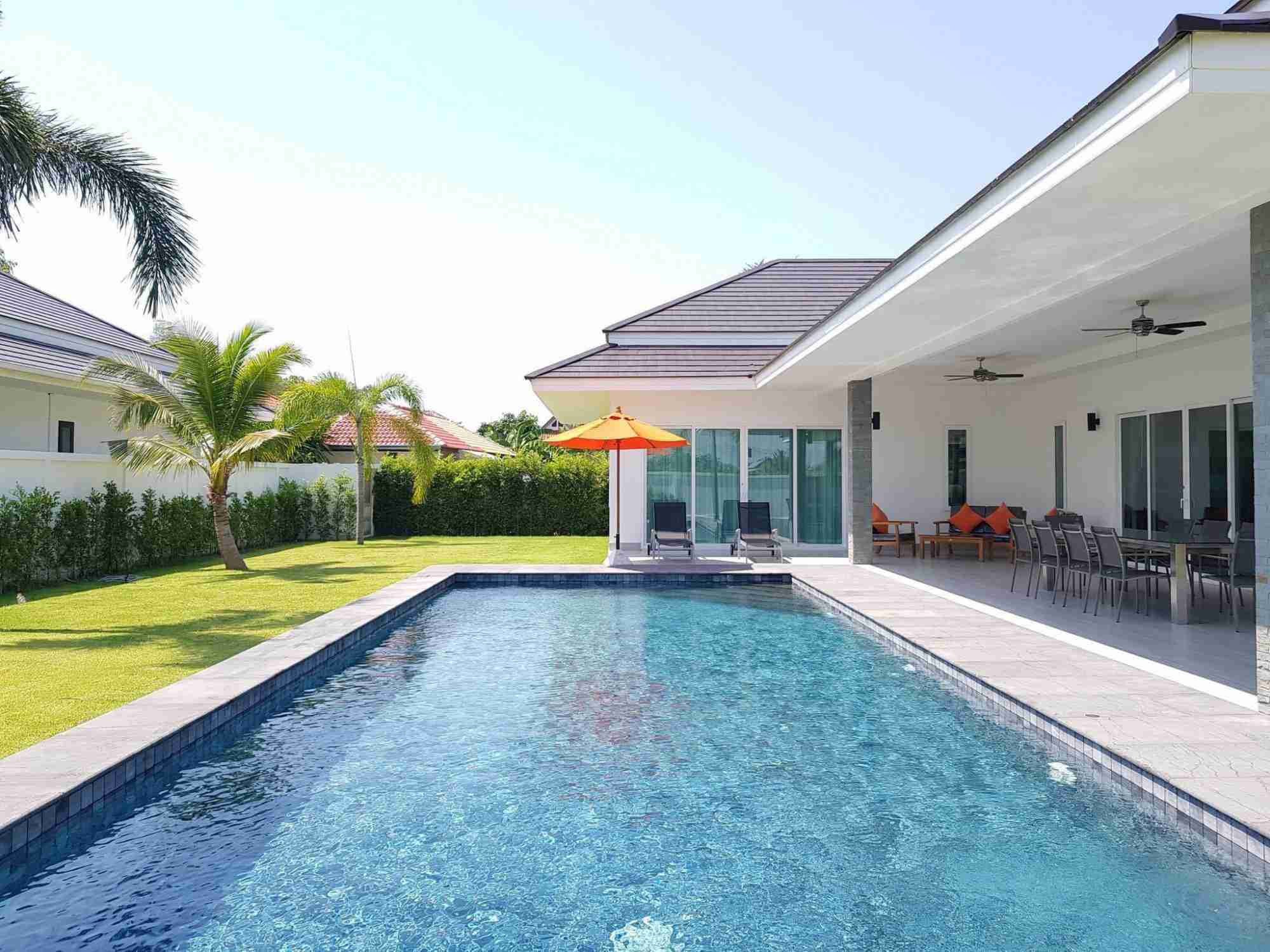 - Großer schattiger Terrassenbereich, der Schutz vor dem tropischen Klima von Hua Hin bietet.
