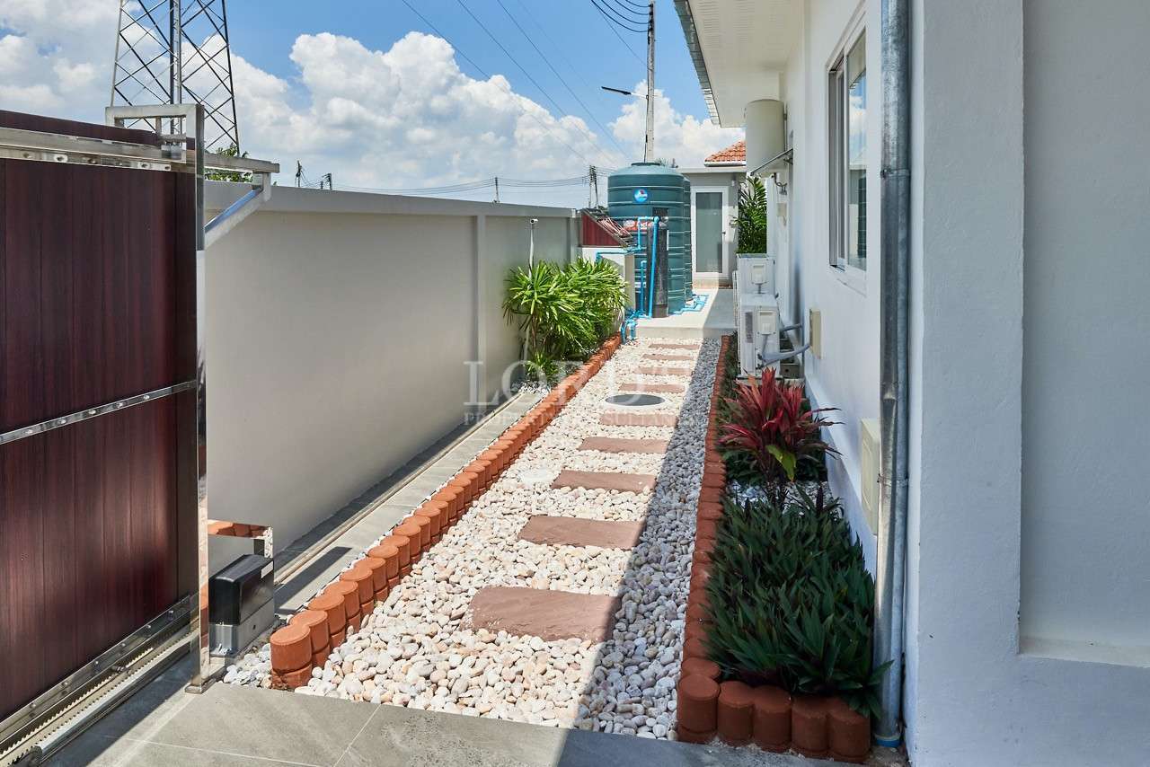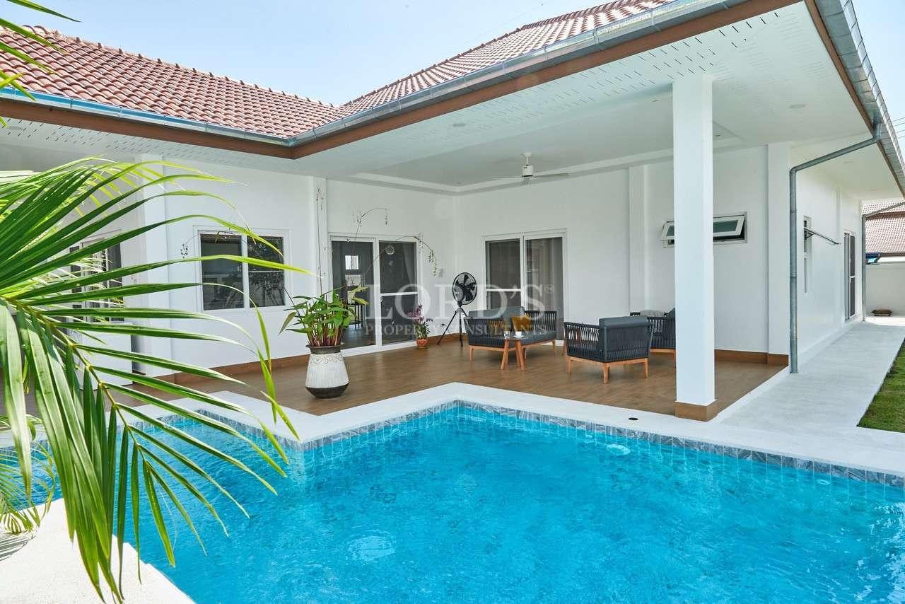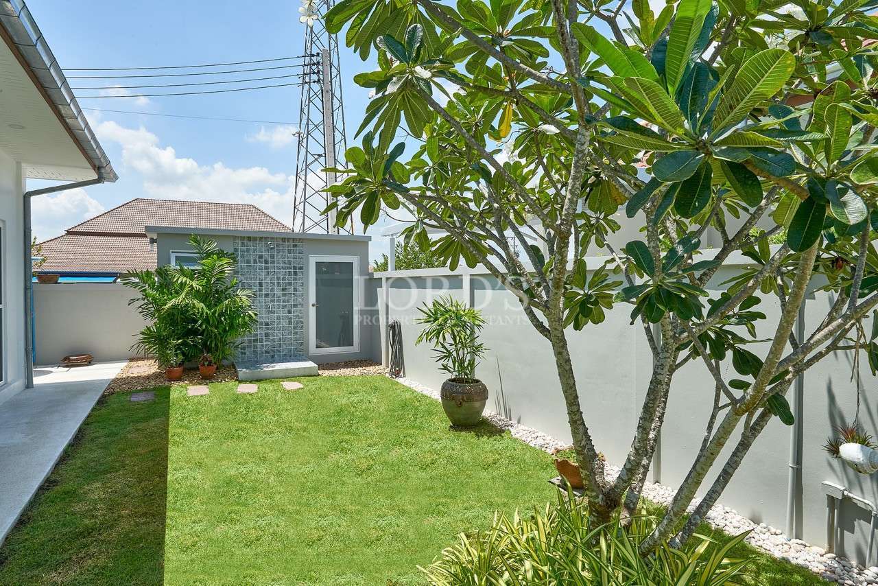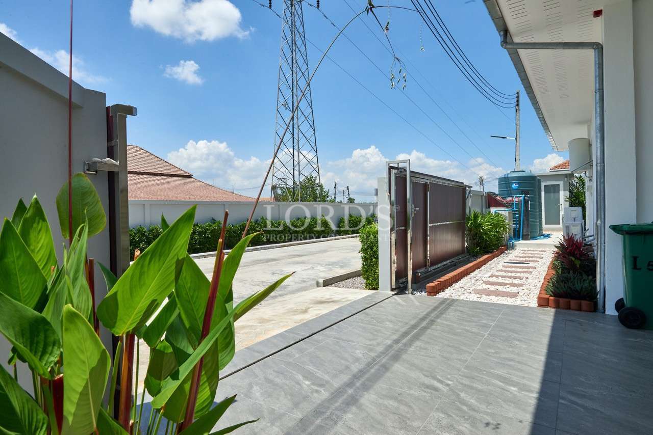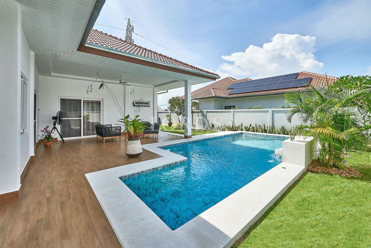 Diese schöne, lichtdurchflutete Pool-Villa mit 3 Schlafzimmern und 2 Bädern wurde erst im August 2023 fertiggestellt und befindet sich in der beliebten Gegend von Soi 112, nur 10 Minuten vom Stadtzentrum und den Stränden entfernt. Der Pool befindet sich über die gut überdachten und schattigen Terrassen und bietet einen entspannenden Blick auf den Garten auf dem grünen Rasen.