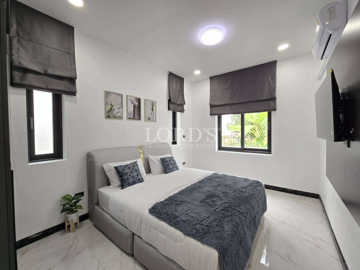 This house is conveniently located on the south part of central Hua Hin just 2 kilometers from Bluport, a popular shopping destination, and the beach. Additionally, there are numerous restaurants and convenience stores within 1 kilometer, providing easy access to dining and everyday necessities. This prime location combines comfort and convenience, perfect for both residents and vacationers.
