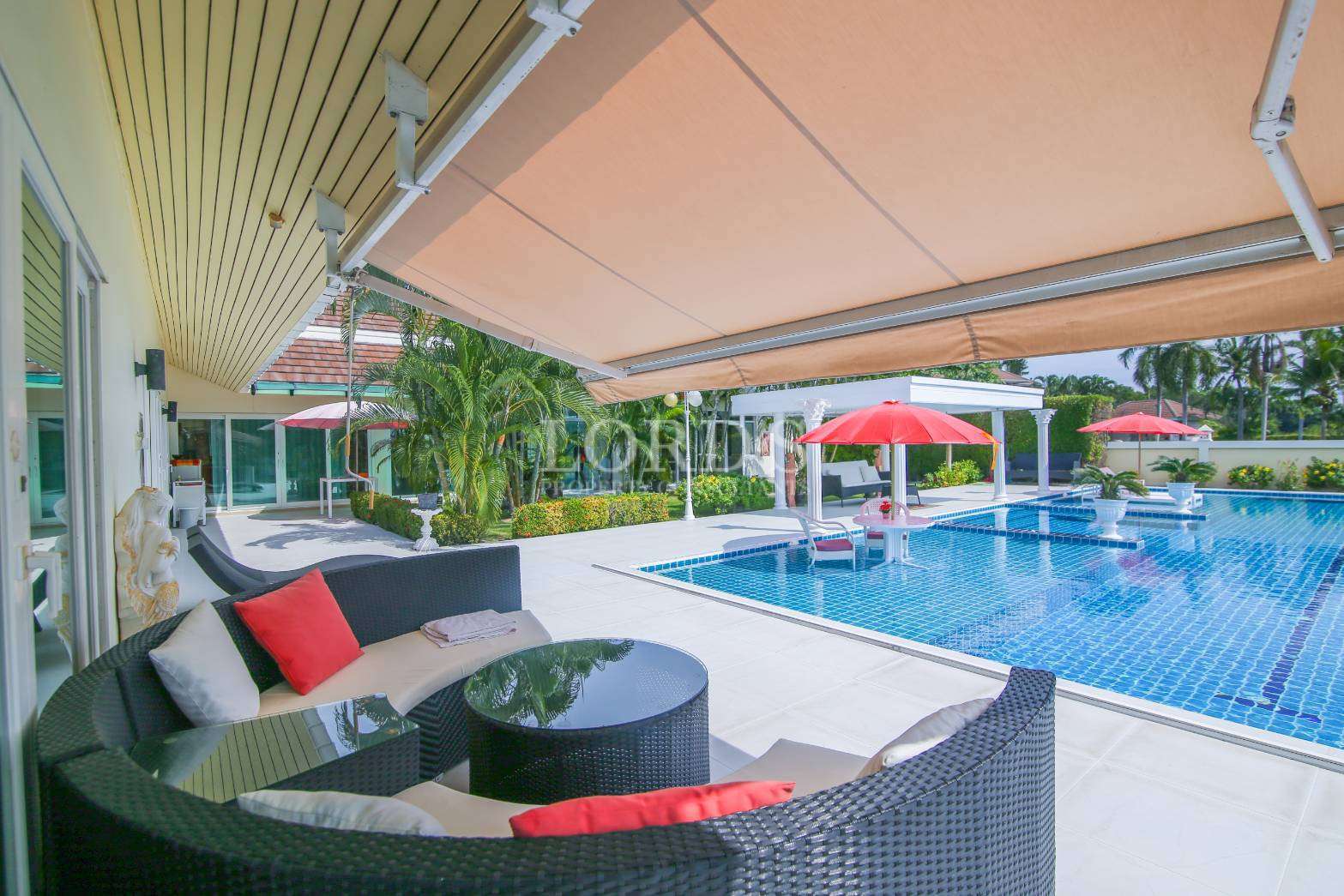 This Pool Villa is located in directly atPalm Hills Golf Course The villa comes fully furnished, 4 bedrooms, 4 bathrooms and kitchens.