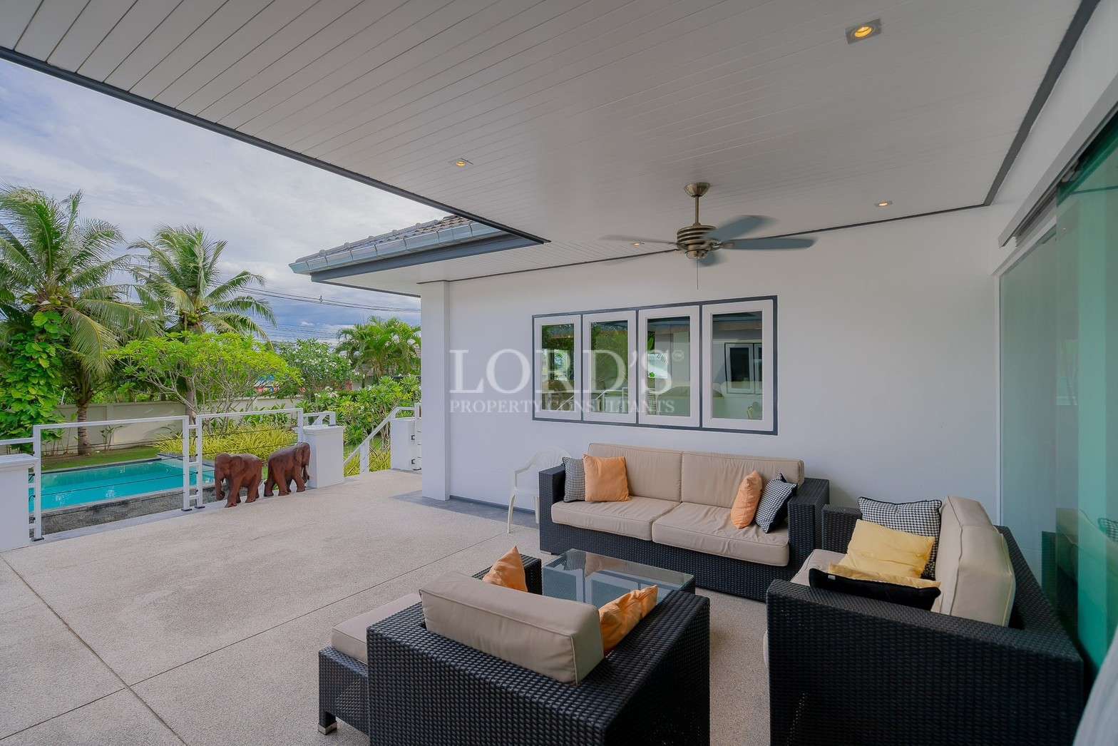 This modern pool villa comes with fully furnished. The villa is located in a serene and tranquil environment, offering a peaceful lifestyle in a convenient location in between Hua Hin And Black Mountian Golf Course. All shopping and restaurant facilities are available nearby, like 7/11, Tesco Lotus, Daddy Daily Restaurant, Marzipan Cafe, Artist Village, etc.