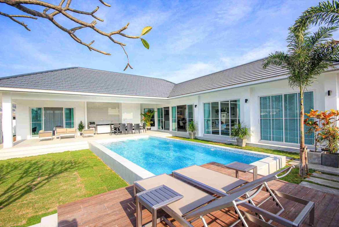 Inside an exclusive villa development in Hua Hin, offering a unique lifestyle with only 33 elegantly designed villas. Each villa is crafted to provide a luxurious living experience, set against the backdrop of Hua Hin’s beautiful landscapes. Conveniently located just a 15-20 minute drive from the vibrant heart of Hua Hin, residents can easily access popular attractions such as Bluport Shopping Mall, Market Village, water parks, hospitals, and pristine beaches. It perfectly combines luxury, comfort, and accessibility, making it an ideal choice for those seeking a tranquil yet connected lifestyle in Thailand.
